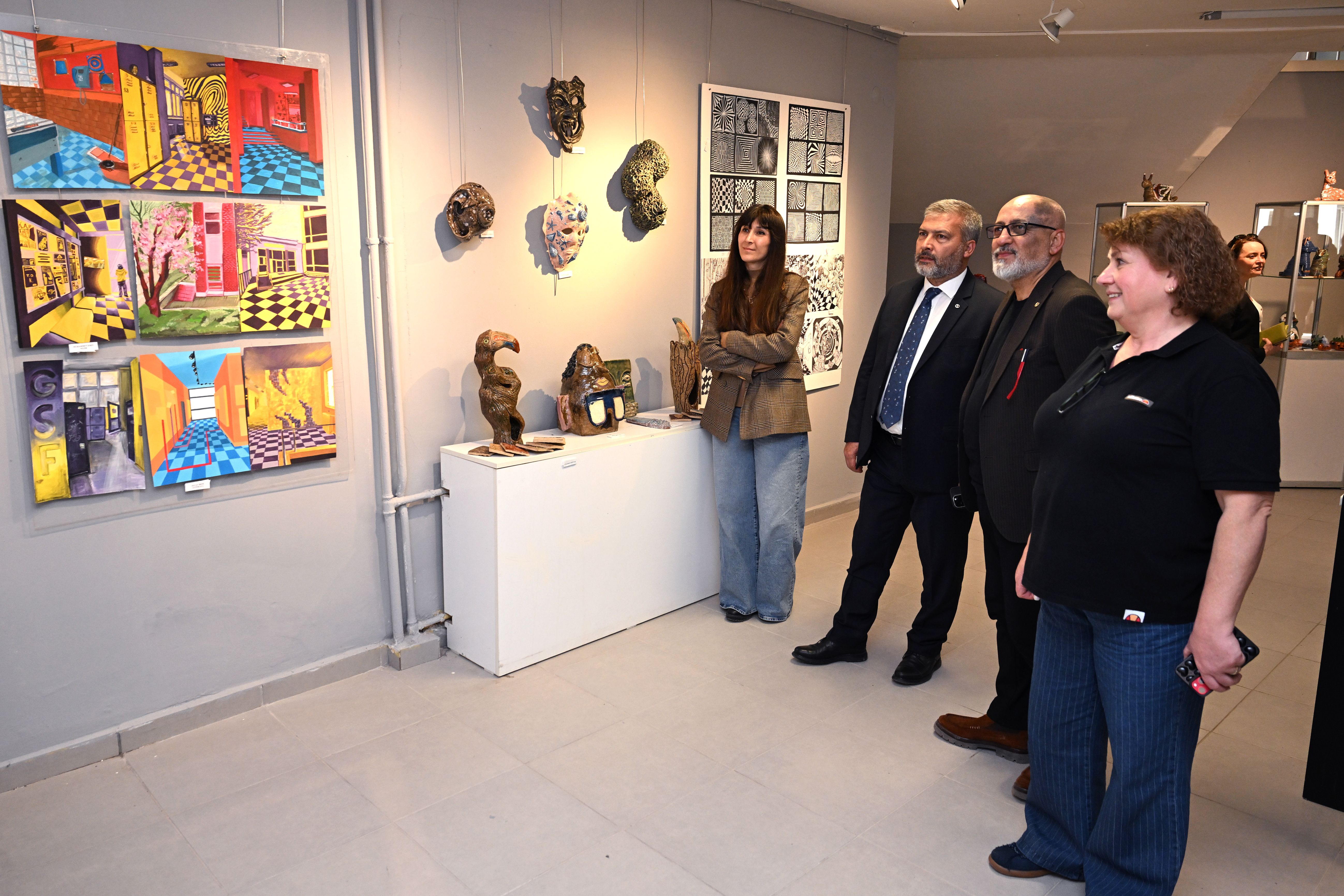 Anadolu Üniversitesi GSF’de yer alan Galeri G, Galeri S ve Galeri F salonlarında hazırlanan üç ayrı öğrenci sergisinin açılışlarına Eğitim Fakültesi Dekanı Prof. Dr. İbrahim Halil Diken, GSF Dekanı Prof. Duygu Kahraman ve çok sayıda sanatsever katıldı.
