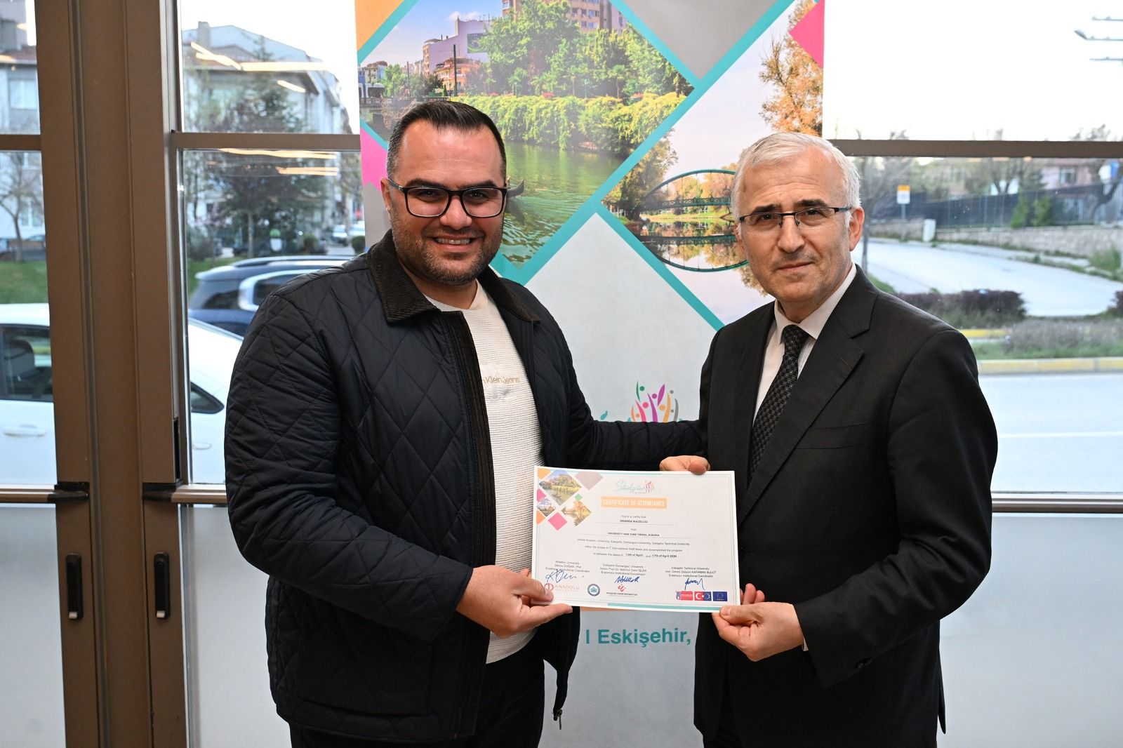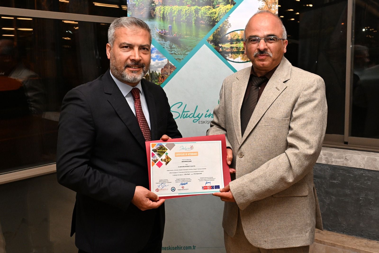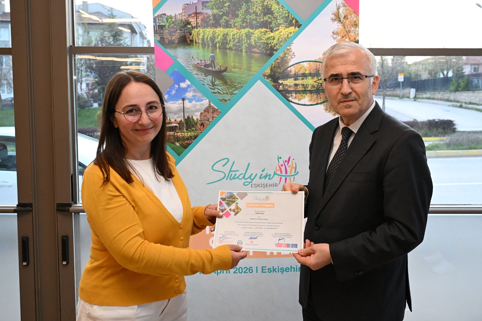 Anadolu Üniversitesi, Eskişehir Osmangazi Üniversitesi ve Eskişehir Teknik Üniversitesi ev sahipliğinde düzenlenen “1st Study in Eskişehir International Staff Week” programının dördüncü gününde kapanış yemeği ve sertifika töreni gerçekleştirildi.