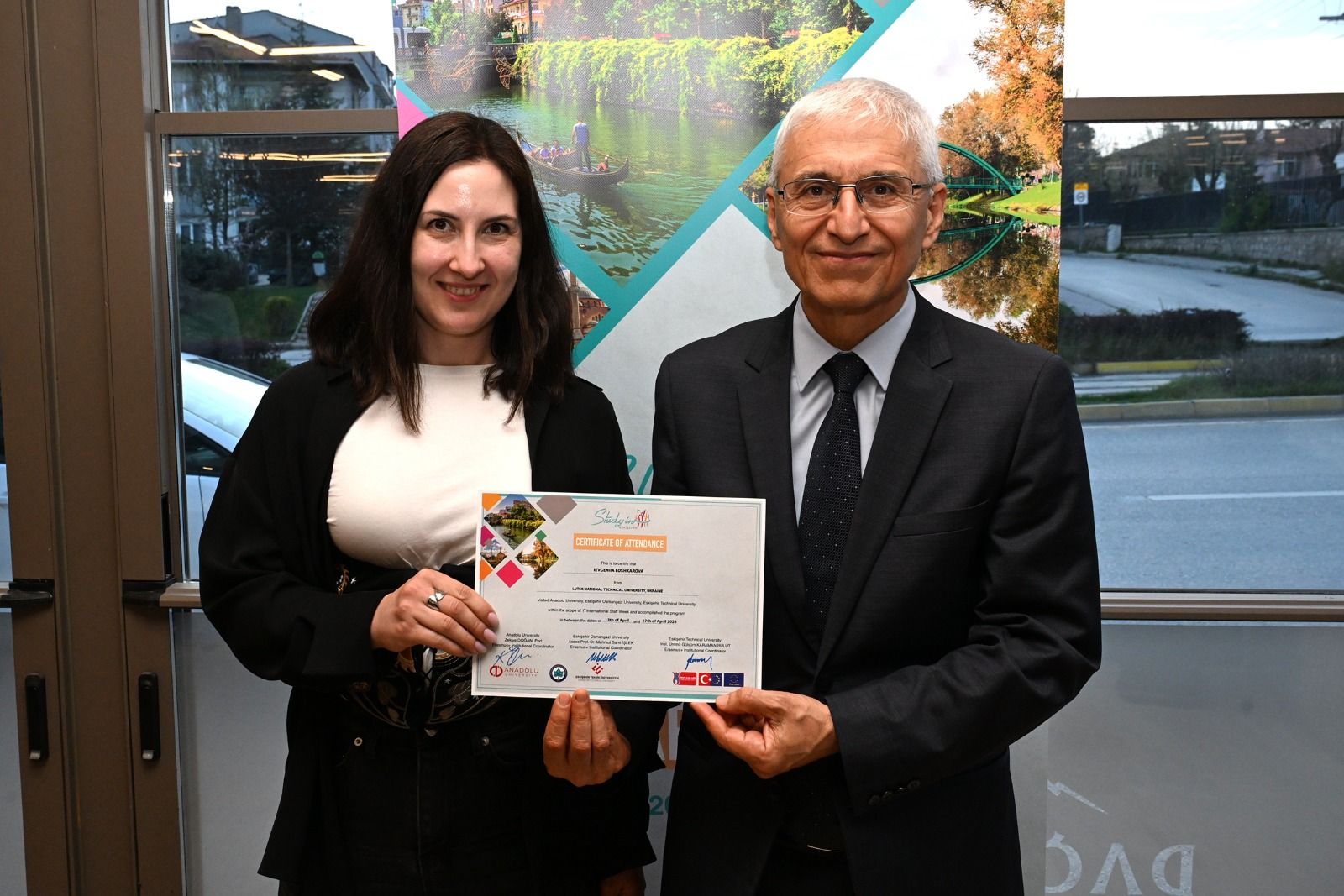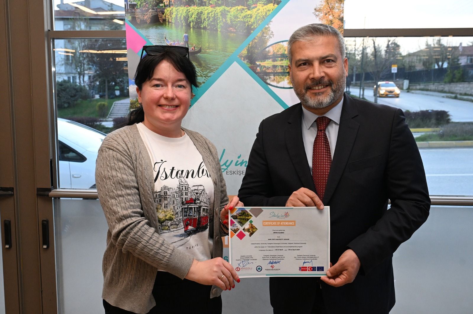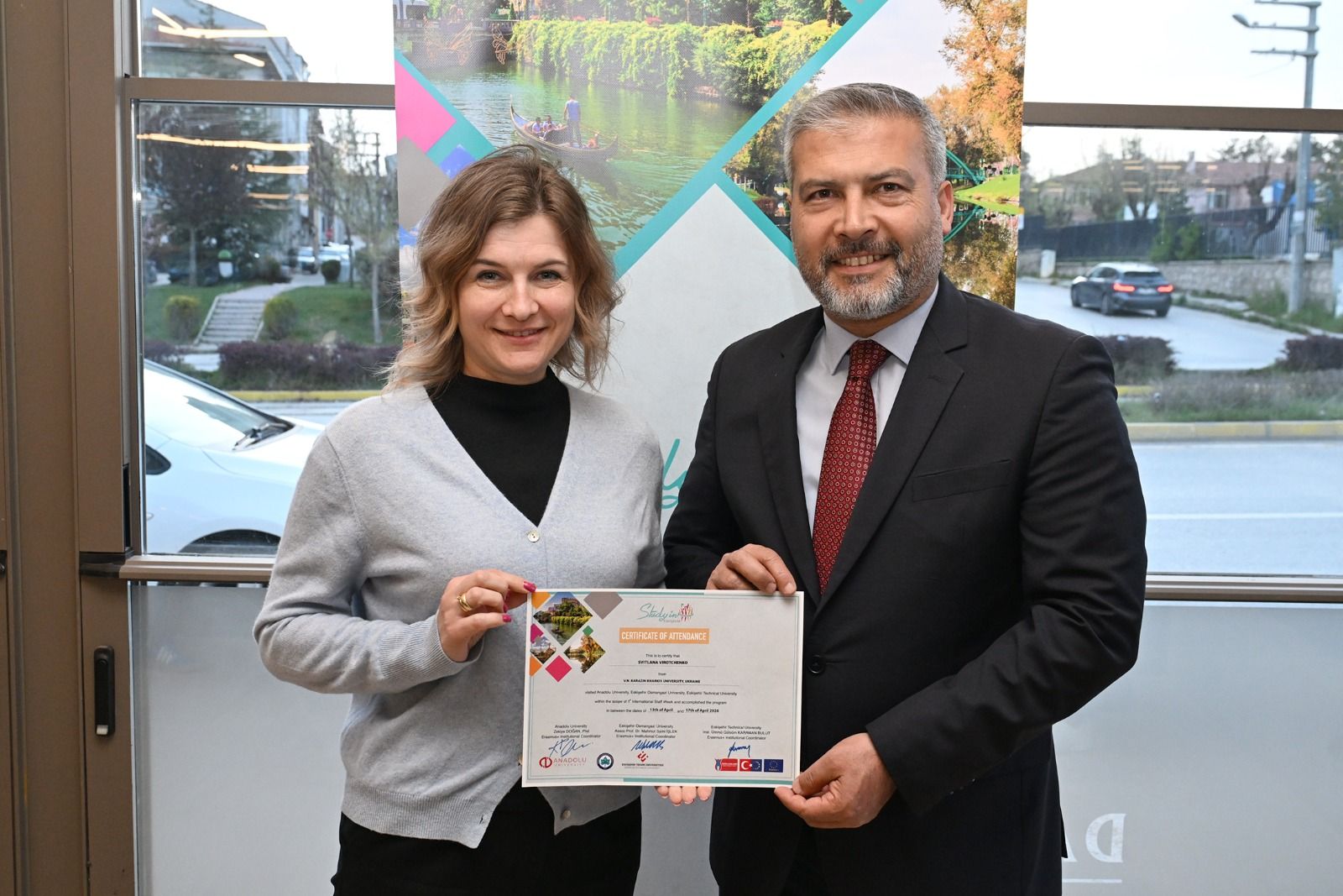 Anadolu Üniversitesi, Eskişehir Osmangazi Üniversitesi ve Eskişehir Teknik Üniversitesi ev sahipliğinde düzenlenen “1st Study in Eskişehir International Staff Week” programının dördüncü gününde kapanış yemeği ve sertifika töreni gerçekleştirildi.