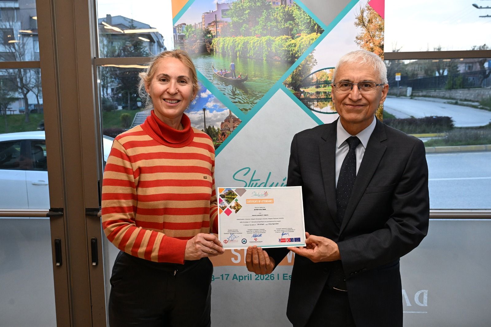 Program kapsamında gerçekleştirilen törende, etkinliğe katkı sağlayan ve program süresince aktif katılım gösteren uluslararası akademik ve idari personele katılım sertifikaları üniversitelerin rektörleri tarafından takdim edildi. Sertifika töreninin ardından katılımcılarla birlikte toplu fotoğraf çekimi gerçekleştirildi.