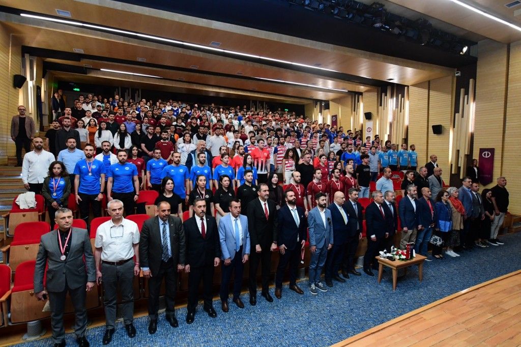 Törende TÜSF tarafından bireysel ve takım sporlarında düzenlenen müsabakalarda üniversitemizi başarıyla temsil eden öğrenciler başarı belgelerini ve Anadolu Üniversitesi Rektörü Prof. Dr. Yusuf Adıgüzel, Rektör Yardımcısı Prof. Dr. Yusuf Özkay, Genel Sekreter Yardımcısı ve SKS Daire Başkanı Abdurrahman Şafak ve senato üyelerinden aldı. Törende ayrıca Anadolu Üniversitesi 39. Geleneksel Spor Turnuvası’nda dereceye giren takımların sporcuları ve uluslararası öğrencilerin katılımı ile üç kıtadan 11 ülke takımının mücadele ettiği International Students Football Tournament 2025’de derece alan takımlara madalya ve kupaları takdim edildi.
