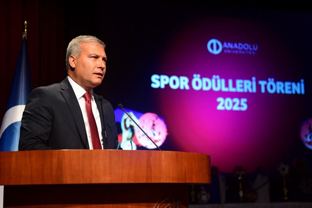Anadolu Üniversitesi Rektörü Prof. Dr. Yusuf Adıgüzel, Spor Ödülleri 2025’in açılışında yaptığı konuşmada şunları söyledi: “Önceki yönetimlerde olduğu gibi ben de göreve başladığım ilk andan itibaren üniversitemizin spor faaliyetlerini desteklemeye devam edeceğim. Sporu seven aynı zamanda da amatör olarak spor yapan bir rektör olarak bundan sonraki spor müsabakalarında, karşılaşmalarda Türkiye içindeki ve dışındaki madalya almaya gidecek arkadaşlarımızı destekleyeceğiz. Sağlıklı bedenlere, beyinlere ve zihinlere ihtiyaç var ve biz bu ihtiyacı sporla karşılayabiliriz. Bunun için de bugüne kadar yapılan yatırımların üzerine yenilerini koyarak geliştirmeye devam ediyoruz ve devam ettirmek istiyoruz. Spor turnuvalarımız 41 yıldır devam eden bir gelenek. Kampüsümüz çok gelişmiş spor altyapısına ve tesislerine sahip. Yeni tesisler de kazandırmaya devam ediyoruz. Bu bağlamda Yunus Emre Kapalı Spor Salonu çok yakın bir zamanda hizmete başlayacak. Yunus Emre Kapalı Spor Salonu, 20’ye yakın branşın yapılabildiği dört farklı spor tesisinin olduğu büyük bir kompleks olacak. Bunun dışında hâlihazırda akademik personele, öğrencilerimize ve emekçilerimize hizmet veren spor tesislerimiz var.”