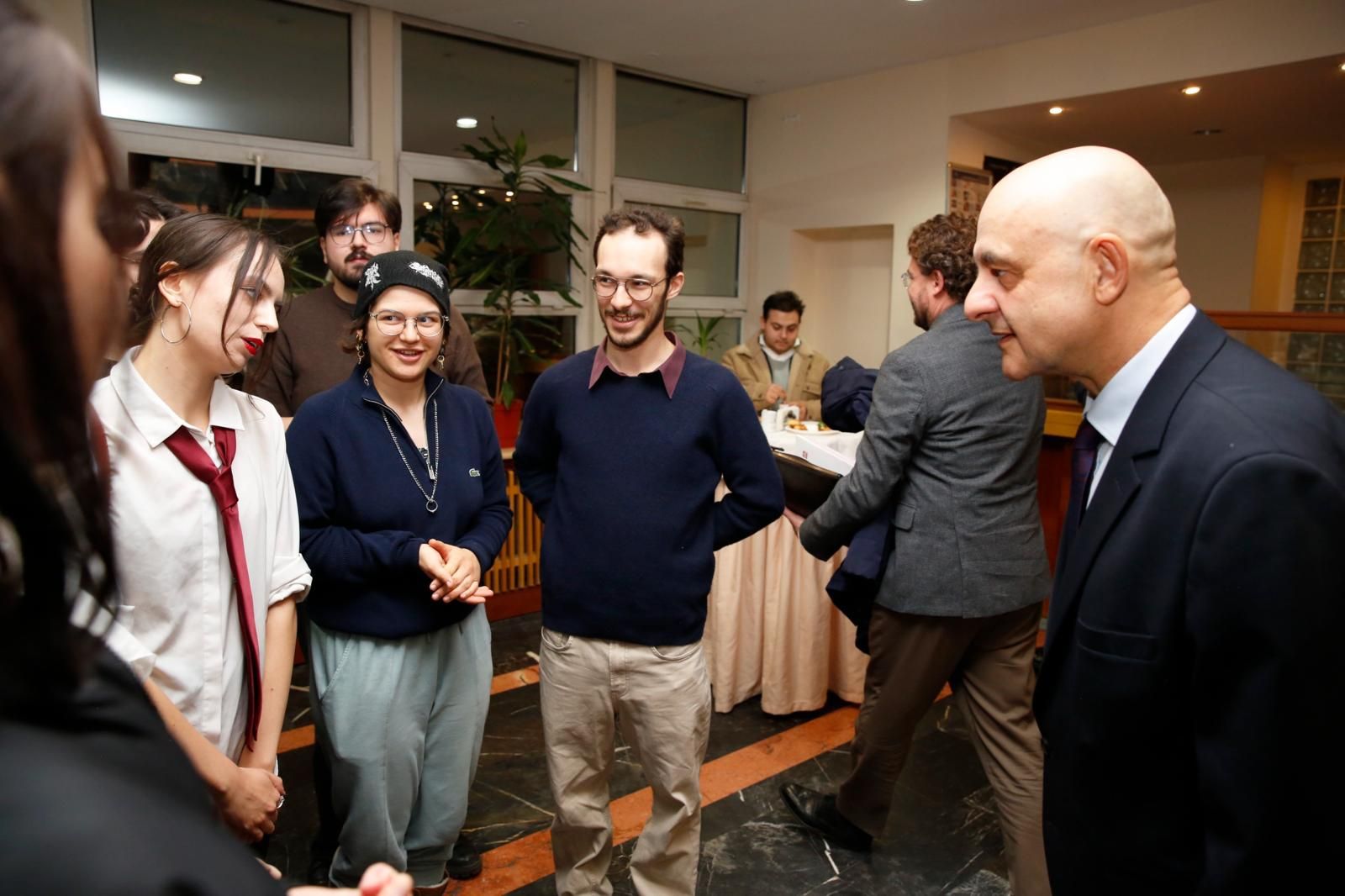 Konuşmaların ardından Rektör Prof. Dr. Yusuf Adıgüzel ve Büyükelçi Lang, törene katılan öğrencilerle sohbet etti.