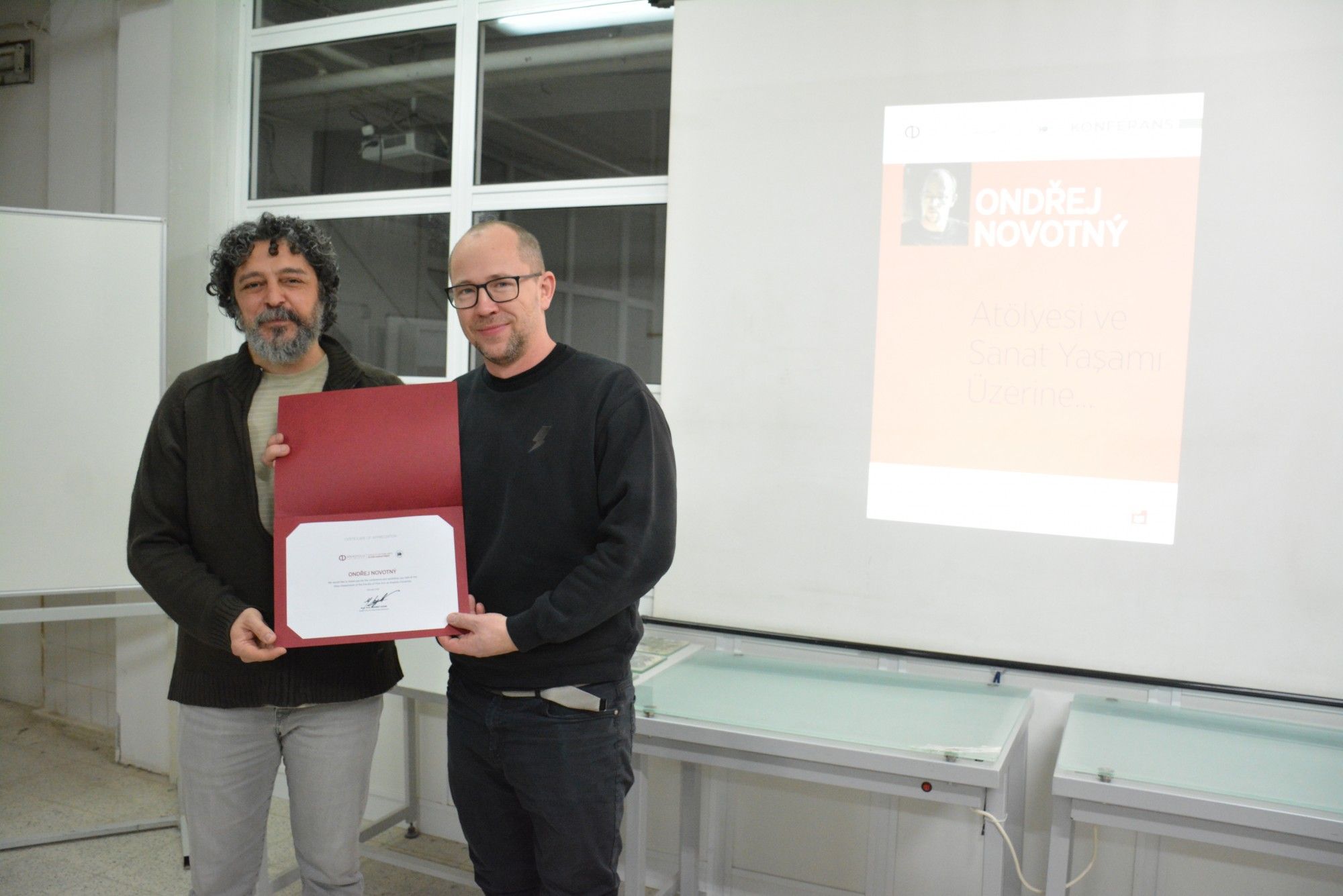 Konferansın ardından düzenlenen atölye çalışmasında Novotný, kendi üretim tekniklerini öğrencilerle uygulamalı olarak paylaştı. Öğrenciler çalıştay kapsamında sanatçının yönlendirmesiyle camın şekillendirilmesi, yüzey işlemleri ve form oluşturma süreçlerini deneyimleme fırsatı buldu. Çalıştay, 25 Şubat Çarşamba gününe kadar devam edecek.