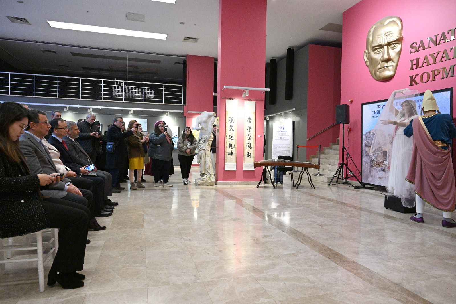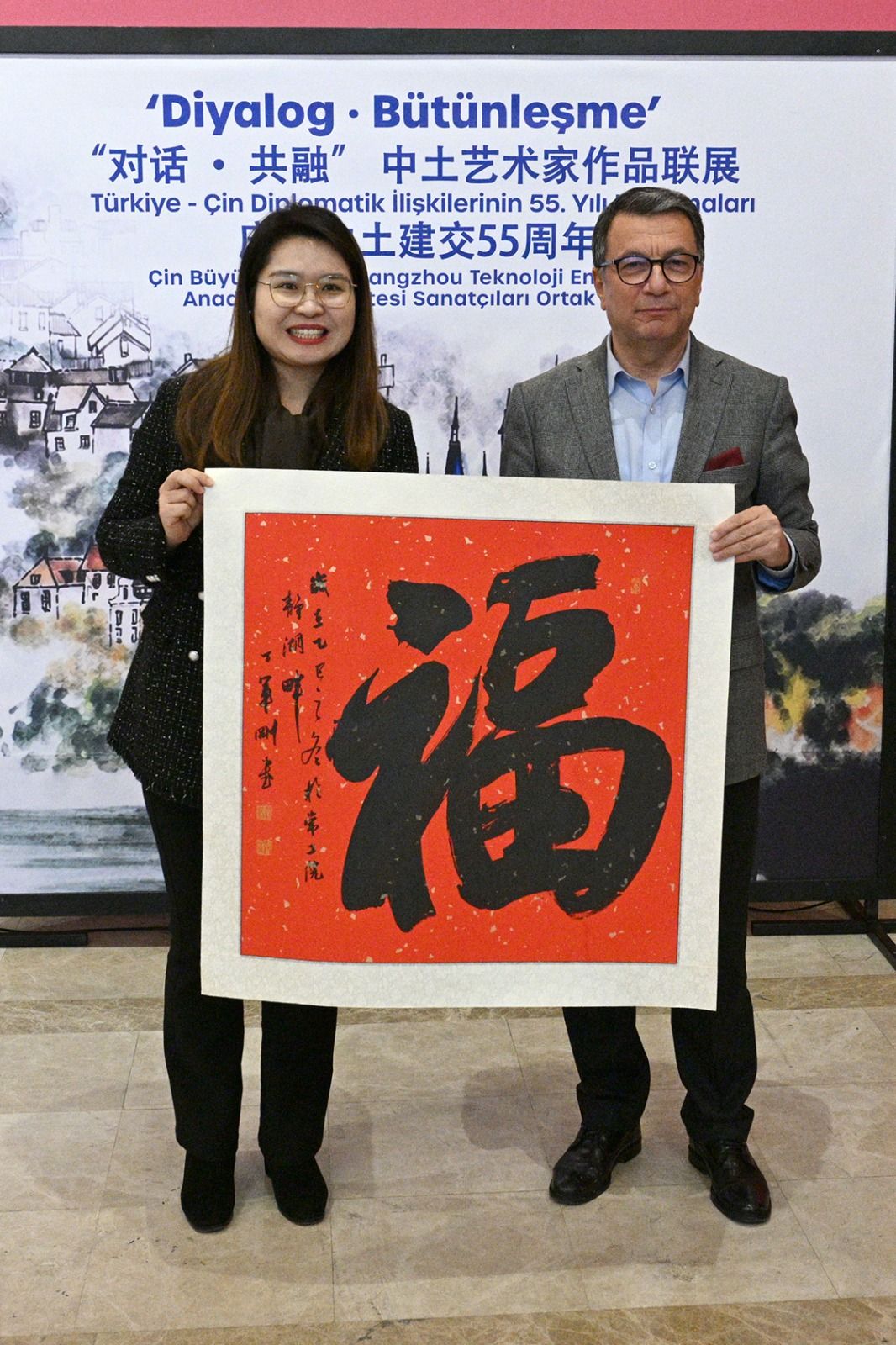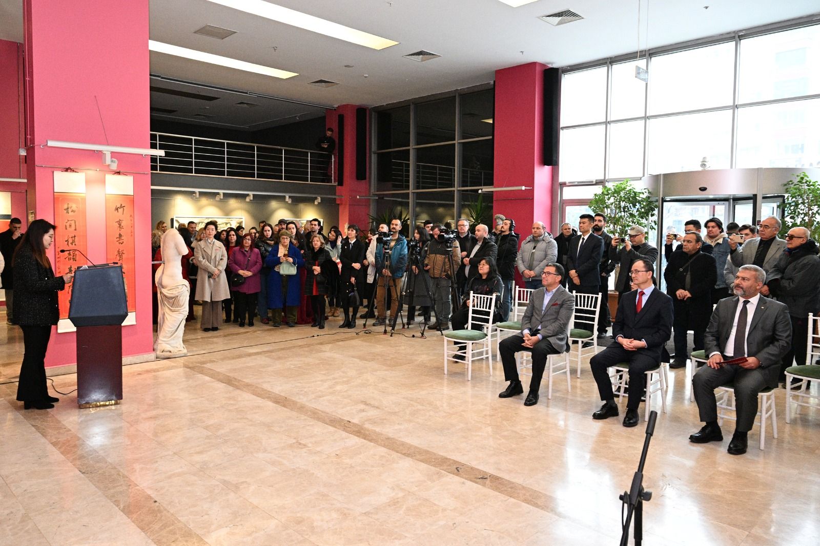 Çin Halk Cumhuriyeti’nin Türkiye Cumhuriyeti Büyükelçisi Jiang Xuebin açılış konuşmasında kültür diplomasisinin önemine dikkat çekerek, Türk ve Çin kültürleri arasında birçok ortak nokta bulunduğunu ifade etti. Çin Halk Cumhuriyeti’nin Türkiye Cumhuriyeti Büyükelçisi Jiang Xuebin, konuşmasına şöyle devam etti: “Kültür, iki ülkenin halkını bağlayan en canlı bağdır. Türkiye’nin zengin ve köklü medeniyetinden her zaman etkileniyorum. Türk ve Çin kültürlerini daha yakından tanıdıkça, aramızda birçok ortak nokta bulunduğunu görüyorum. Kültürel ifade biçimlerimiz ve duygularımızı dile getirme şekillerimiz arasındaki benzerlikler gerçekten dikkat çekicidir. Bu durum, kültür diplomasisinin diplomatik çabalarımızda vazgeçilmez bir unsur olduğunu bir kez daha ortaya koyuyor. Bugün düzenlediğimiz bu resim ve sanat eserleri sergisi, bu anlayış doğrultusunda atılmış önemli bir adımdır. Çin ile Türkiye arasındaki diplomatik ilişkilerin 55’inci yıl dönümünde, siyasi güveni daha da pekiştirmeyi ve her alandaki somut iş birliğimizi derinleştirmeyi hedefliyoruz. Aynı zamanda kültür, eğitim ve halklar arasındaki temasları artırarak ikili ilişkilerimizi yeni bir seviyeye taşımayı amaçlıyoruz.”