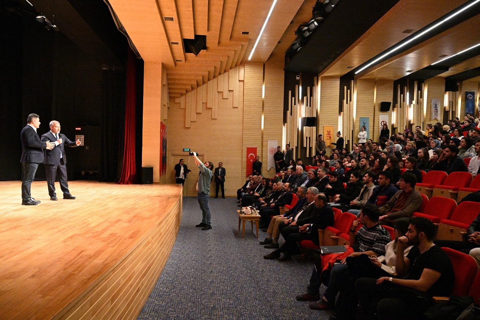Ulaştırma ve Altyapı Bakan Yardımcısı Osman Boyraz, konuşmasında Anadolu Üniversitesi öğrencileriyle bir araya gelmekten duyduğu memnuniyeti dile getirerek Türkiye’nin son yıllarda ulaştırma alanında kaydettiği ilerlemeleri kapsamlı biçimde değerlendirdi. Ulaştırma politikalarının yalnızca teknik yatırımların değil; ekonomik, sosyal, kültürel ve stratejik dönüşümlerin de merkezinde olduğuna dikkat çeken Boyraz, Türkiye’nin jeopolitik konumunun sağladığı avantajlarla küresel ticaret yollarında vazgeçilmez bir ülke haline geldiğini vurguladı. Gençlerle kurulan iletişimin kendileri için büyük bir değer taşıdığını belirten Boyraz, üniversite buluşmalarını yalnızca bilgi aktarma süreçleri değil, aynı zamanda gençlerden beslenen karşılıklı öğrenme ortamları olarak gördüklerini ifade etti. Türkiye’nin kara, hava ve demiryolu yatırımlarındaki dönüşümün geleceğin vizyonuyla doğrudan ilişkili olduğunu söyleyen Boyraz, bu büyük dönüşümün en önemli aktörlerinin gençler olacağını belirtti. Bakan Yardımcısı Osman Boyraz konuşmasının devamında şunları söyledi: “Bu buluşmaları sadece bir sunum olarak değil, gençlerin fikirlerini, ihtiyaçlarını ve beklentilerini anlamaya yönelik bir fırsat olarak görüyorum. Gençlerin her bir önerisi, her eleştirisi, her sorgulaması bizim için yolumuzu aydınlatan bir meşale niteliğindedir. Projeler ne kadar büyük olursa olsun, insanla buluşmuyorsa, insana dokunmuyorsa bir anlamı yoktur. Bugün burada gördüğüm gençlik tablosu, bir ressamın fırçasıyla bile bu kadar güzel çizilemezdi. Çünkü bu atmosferi güzelleştiren, bulunduğumuz mekânı anlamlı kılan sizlersiniz. Türkiye Yüzyılı’nda ulaştırma vizyonundan bahsederken aslında sadece ulaşım yatırımlarından söz etmiyoruz. Biz, Türkiye'nin geleceğini şekillendirecek büyük bir dönüşümden söz ediyoruz. Türkiye öyle bir coğrafyada yer alıyor ki, dünyada benzeri çok az bulunur bir ulaşım avantajına sahibiz. Üç kıtanın kavşağındayız. 4 saatlik bir uçuş mesafesiyle 1,5 milyar insanın yaşadığı 67 ülkeye ulaşabiliyoruz. Bu öyle bir jeopolitik nimettir ki, dünya ticareti açısından Türkiye’siz bir koridor düşünmek mümkün değildir. Bizim görevimiz, bu büyük avantajı projelerle daha güçlü hale getirmektir. Bu noktada Kalkınma Yolu Projesi, Orta Koridor, Güney Koridor ve Zengezur Koridoru gibi uluslararası ulaştırma hatlarının ne kadar stratejik olduğunu özellikle vurgulamak istiyorum. Uzakdoğu’dan Avrupa’ya giden bir yükün Ümit Burnu rotasında 45 günde, Süveyş Kanalı üzerinden yaklaşık 35 günde taşındığını biliyoruz. Türkiye’nin merkezinde yer aldığı Orta Koridor ise bu süreyi 18 güne indiriyor. Yani Türkiye sadece transit bir ülke değil; küresel ticaretin en hızlı, en güvenli, en ekonomik güzergâhını sağlayan kilit bir ülkedir.”
